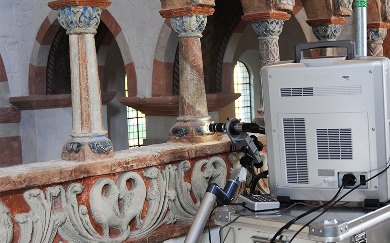 Abb. 1.2. Berührungsfreie Untersuchung der Chorschranke von St. Michael in Hildesheim (Foto HAWK, Nicole Riedl)